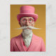 Un gentleman excentrique habillé d'un costume rose frappant, chapeau dessus assorti, et lunettes rondes. Sa longue moustache blanche emblématique et sa soif sophistiquée font de ce portrait un mélange audacieux d'élégance et de fantaisie, parfait pour les amateurs d'art et de mode.