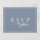 Carte postale de demande de réponse de mariage avec fleur de prairie aquarelle bleu ardoise, avec demande de chanson. Personnaliser le texte, personnaliser le style de police, la couleur et la taille. Conçue pour correspondre à notre collection botanique bleu ardoise et pêche.