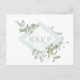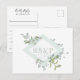 Tons élégants de feuillage de couleur vert sauge aquarelle, réponse au mariage avec une demande de chanson sur une carte postale. Le devant de la carte présente un cadre en forme de diamant orné de botanique de sauge poussiéreuse. Conçu pour correspondre à notre collection botanique de sauge poussiéreuse.