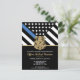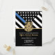 Honorer le dévouement et le travail acharné d'un nouvel agent de l'application de la loi avec cette invitation personnalisée à obtenir un diplôme de police. Doté d'un badge de police et d'un drapeau de la police avec des rayures noires et blanches audacieuses et une fière ligne bleue mince, ce dessin symbolise la force, le service et le sacrifice. L’invitation est personnalisée avec le nom du diplômé en lettres d’or, ce qui en fait un souvenir mémorable pour les amis, la famille et les autres officiers. Parfait pour célébrer un diplôme, une promotion ou un jalon dans la carrière d’un officier de police. Invitation vos invités dans le style et montrer le soutien pour le nouveau membre de la communauté mince ligne bleue.