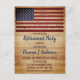 Cartes d'invitation pour fête de retraite de police militaire avec drapeau américain rustique. Ces invitations de fête avec drapeau américain rustique sont parfaites pour les retraites militaires, les fêtes d'adieu pour les soldats, les départs de déploiements militaires, les célébrations de retour au pays, et les remises de diplômes militaires ainsi que pour les célébrations des agents de police et de la police. Personnalisez cette invitation avec drapeau américain avec l'événement de votre soldat, son nom et les détails de la fête.