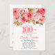 Invitation Carte Postale Elégant rose floral 100e anniversaire