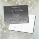 Festive New Year's Eve Party 2024 invitation carte postale, avec un design typographique blanc sur un arrière - plan gris. Avec des lettres personnalisables, vous pouvez ajouter votre propre nom de famille. Une image à cordes blanches et dorées accentue l'avant de la carte. Une façon festive de célébrer 2023 avec des amis et des proches.