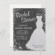 Un look vintage rétro tableau de bord de douche nuptiale avec un design de craie ornementale, robe mariage et un cintre.
