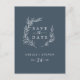 Cette feuille minimale ardoise bleue sauf la carte postale date est parfait pour un mariage élégant. Le design se compose d'une simple silhouette verte dans un bleu gris foncé avec un style minimaliste classique.