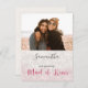 De minuscules fleurs sauvages dans un motif en rose et beige, posés sur un arrière - plan texturé d'aquarelle. Le lettrage "Maid of Honor" est écrit à la main en aquarelle donnant à votre modèle une sensation unique et artistique. Tout ce que vous avez à faire est de le personnaliser avec vos propres détails personnels.