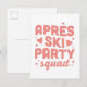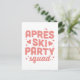 Équipe de fête d'après-ski club de filles après le ski groupe d'amies équipage de voyage de vacances d'hiver thème de la cabane de montagne enterrement de vie de jeune fille. Cadeau esthétique rose girly groovy preppy rétro vintage besties petite carte d'impression carte postale invitation.