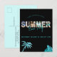 Célébrez la fin de l'été dans le style avec cette invitation chic, minimaliste, noire et turquoise beach party. La carte postale présente le mot été dans une typographie audacieuse remplie de photographies sur le thème de la plage sur un arrière - plan noir. Le palmier turquoise et les illustrations de verdure tropicale complètent le style minimaliste. Ajoutez les détails de votre fête à l'invitation et envoyez-le à vos amis et votre famille.