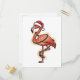 Invitation Carte Postale Flamant rose enveloppé de lumière de Noël Oiseau r