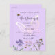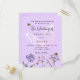 Un arrière - plan violet. Décoré d'abeilles et de fleurs sauvages peints en violet et rose et d'un grand papillon. Personnalisez et ajoutez vos noms et les détails.