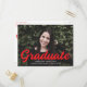Invitation Carte Postale Gras Red Script Photo Graduation Party