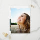Une carte postale moderne d'invitation à la fête de remise de diplômes avec la photo de la grade superposée avec "gradué" dans un script blanc branché avec des swashes et leur nom et leur année de classe en lettres blanches simples. Au verso, ajoutez une photo supplémentaire et les détails de votre fête.