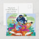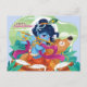 Joyeux Janmashtami avec Krishna jouant des flûtes avec un boeuf dans l'arrière - plan.