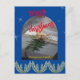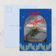 Invitation Carte Postale Joyeux Noël bleu rouge Texte feuillage moderne