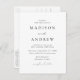 Carte postale minimaliste et moderne avec vos détails mariages en lettres noires avec accents de script de calligraphie. L'arrière - plan blanc peut être changé en une couleur de votre choix. Personnalisez le dos de la carte postale chic faire-part de mariage avec votre adresse de retour, la date de réponse souhaitée, le site Web du mariage et les instructions pour les invités utilisant le modèle texte fourni. Conçu pour coordonner avec notre collection de mariages Modern Elegance.