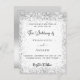 Un arrière - plan blanc à l'avant. Décoré avec de la parties scintillant en faux argent. Personnalisez et ajoutez vos noms et les détails de votre fête. Retour : faux arrière - plan argent