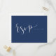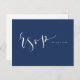 Script RSVP écrit à la main en blanc sur couleur modifiable bleu marine arrière - plan, élégant et élégant, grand moderne simple et personnalisé carte postale RSVP. Voir toutes les pièces correspondantes dans la collection.