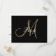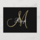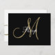 Carte Postale RSVP Monogramme Noir Or Script Minimal. Customisez avec votre monogramme, couleurs mariages et renseignements personnels.