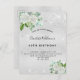 Une invitation moderne, élégante et glamour pour une fête d'anniversaire de 40ème femme (ou tout âge). Un arrière - plan métallique à l'aspect faux argenté avec de la poussière de parties scintillant faux argent, des fleurs blanches et de la verdure. Le nom est écrit avec un script de style moderne en lettres de main noire. Personnalisez et ajoutez un nom, un âge et les détails de votre fête. Dos : faux arrière - plan argent, design de carte postale. Conseil : Si vous ne voulez pas qu'il ressemble à une carte postale, cliquez sur customiser, allez à l'arrière et retirez le séparateur et le timbre postal.