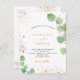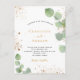 Un arrière - plan blanc décoré d'une végétation d'eucalyptus et d'une poussière de parties scintillant en faux or. Personnalisez et votre nom et les détails de la cérémonie. Lettres noires et dorées Retour : arrière - plan blanc avec poussière de parties scintillant en faux or, design de carte postale. Conseil : Si vous ne voulez pas qu'il ressemble à une carte postale, cliquez sur customiser, allez à l'arrière et retirez le séparateur et le timbre postal.