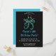 Cette carte présente une pieuvre bleue en haut avec les détails de l'événement en dessous. Le texte sur le devant est modifiable, vous pouvez donc changer les détails ainsi que la police, le placement, le style, la taille et la couleur et en faire votre propre. La couleur sur le dos peut également être modifiée.