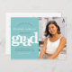Assurez-vous que tous vos amis et vos proches pourront encore célébrer l’événement marquant de votre diplômé, indépendamment des circonstances imprévues actuelles dans le monde. Envoyez cette superbe carte postale, simple, moderne et personnalisée "Changement de plan" pour un événement à retenir. La typographie grasse, graphique, blanche recouvre un arrière - plan bleu aqua turquoise. Sur la droite, ajoutez une photo de votre choix. Personnalisez le texte personnalisé avec le nom de votre diplômé, l’année de classe et les informations sur la date. Votre message personnalisé, une icône de casquette bleu aqua turquoise et votre adresse de retour ornent le dos. Invitations correspondants, cartes de remerciement, toppers casquettes, serviettes, assiettes et autres goodies de graduation sont également disponibles dans cette collection tendance et élégante. Assurez-vous que leur fête spéciale sera toujours aussi festive que prévu ! Il vous suffit de taper le nom de votre diplômée, l’année scolaire et scolaire, les informations sur la date, le message personnalisé, ajouter leur photo, et vous pouvez facilement personnaliser cette carte postale faire-part "Changement de plan". S'il vous plaît, envoyez-moi un message avec toute question ou demande.