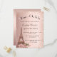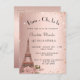 Une invitation moderne, élégante et glamour pour une Quinceañera, 15e anniversaire, thème parisien. Un arrière - plan métallique à l'aspect faux rose d'or avec des étincelles de parties scintillant et la tour Eiffel avec quelques fleurs. Le nom est écrit avec un script de style moderne écrit à la main. Personnalisez et ajoutez les détails de votre fête.