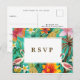 Une carte de réponse de mariage/réponse funky avec un fond turquoise et un design flamant/tropical. Utilisez cette carte de réponse coordonnée pour encourager vos invités à répondre rapidement ! Modifiez les champs de texte disponibles pour répondre à vos besoins. D'autres articles et papeterie de cette collection, tels que des autocollants de faveur et des invitations... Parfait pour les fêtes de plage/d'été/tropicales, les mariages et les événements.