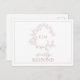 Invitation Carte Postale Rose Dusty Crest Monogramme Mariage RSVP