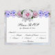 Carte de réponse de mariage de style traditionnel avec un fond de bokeh argenté et accentué d'un arrangement de fleurs de rose rose. Il a une atmosphère merveilleusement subtile et vintage, parfaite pour la mariée à la recherche d'un look victorien mis à jour.
