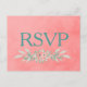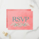 Envoyez de jolies cartes postales de réponse en utilisant ce beau fond de parchemin rose avec RSVP. Le recto de la carte postale comporte un beau texte bleu avec "RSVP" écrit en gras. Une fleur rose et verte se trouve en dessous. Le verso présente également un fond de parchemin rose avec du texte pour saisir des informations sur le nom, la date et le lieu. Achetez les vôtres dès aujourd'hui !
