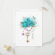 Clé d'or antique aux roses turquoise tendance décorée de feuilles d'or blanc et de perles rose et bleu. Couleur tendance. Rose turquoise. Blanc doré. Tiffany bleu.
