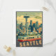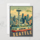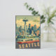 Une illustration captivante de carte postale de style vintage qui évoque le charme et le caractère de Seattle, dans l'État de Washington.