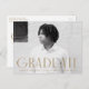 Carte postale simple d'invitation à la remise des diplômes avec photo horizontale du diplômé avec "Graduate" en laiton/or antique, lettrage art déco moderne. Personnalisez le devant de l'invitation de la fête de remise de diplômes en y ajoutant le nom du diplômé, son école et son année d'études. La carte postale s'inverse pour afficher votre adresse de retour et les détails de la fête de remise de diplômes. L'invitation de carte postale est parfait pour les diplômés du secondaire et du collège!