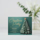 Magnifique script or sur une carte postale verte élégante avec un arbre de Noël qui donne l'illusion unique de regarder 3D complète avec une jolie étoile au sommet sur cet invitation de fête de vacances. Une analyse manuscrite moderne au-dessus de vos détails d'événement personnalisés pour une invitation de carte postale branchée.