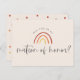 Pink Terracotta Rainbow Matron d'honneur Proposition Invitation Carte postale dans terreux désert muet de terre rose tons de rouille marron orange et jaune avec confetti saupoudrer pois et le motif arc-en-ciel tonique chaud. Les détails modernes de calligraphie de brosse à lettrage à main complètent le design simple et moderne. Customisez ceci ! Pour modifier la disposition, entrez votre texte, puis choisissez "personnaliser" pour modifier des éléments comme la taille et le style de la police. Pour plus d'invitations assorties, fournitures de fête et décoration d'évènements comme celui-ci, cliquez sur "SplendidEvent" pour voir le reste de la boutique!. ・ Copyright ©2020 SplendidEvent™ Conçu exclusivement pour Zazzle, Tous droits réservés. Toutes les oeuvres de conception SplendidEvent™ sont protégées par les lois américaines sur le droit d'auteur et ne doivent pas être reproduites de manière sensiblement similaire. ・ Les contrevenants au droit d'auteur seront poursuivis ・