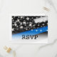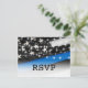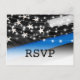 Cartes de réponse sur le thème de la police représentant un drapeau américain avec la ligne bleue fine, des guirlandes lumineuses et un modèle de RSVP pour les forces de l'ordre facile à personnaliser.