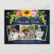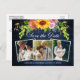Invitation Carte Postale Tournesol en bois bleu rustique Enregistrer la dat