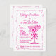 Whimsical et féminin, cette invitation à l'anniversaire à thème expresso martini comporte un grand martini et cadre rose doodle. Tout le texte est modifiable.
