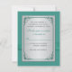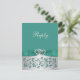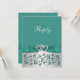 Cette élégante et romantique carte de réponse de mariage argent gris et sarcelle avec motif floral comporte un ruban et un nœud IMPRIMÉS avec une paire de bijoux en diamant IMPRIMÉS et une broche de cœurs joints en strass FAUX (simulés) qui correspond aux invitations de mariage présentées ci-dessous. Le texte et le type de papier sont personnalisables. Certains papiers altéreront la couleur du design. Je ne recommanderais PAS d'utiliser les papiers métalliques or, champagne ou argent, car ils assombriront le design et décoloreront le blanc des diamants sans ajouter d'étincelle supplémentaire à ce que vous obtiendrez avec le papier métallisé glace. Le papier feutré décolorera également le design. ÉGALEMENT, si vous redimensionnez l'invitation, ou si vous changez de police, ou la taille de la police, une partie du design et/ou du texte risque d'être coupée. Tout s'imprimera comme vous le voyez sur votre écran. Je ne verrai pas votre invitation, et Zazzle ne corrigera RIEN (fautes de frappe, désalignement, etc.). Si vous avez besoin d'aide avec cette invitation, veuillez m'envoyer un courriel AVANT de passer votre commande