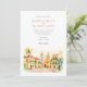 Transportez vos invités dans les rues romantiques de Carthagène, Colombie, avec cette étonnante aquarelle faire-part de mariage. Les oeuvres d'art capturent magnifiquement l'essence de cette ville coloniale historique, mettant en valeur ses bâtiments emblématiques et colorés dans des tons jaunes chauds, orange riche, vibrants en terre cuite, et des touches de bleu turquoise. Des toits de tuiles rouges et oranges couronnent les bâtiments, tandis que de charmantes portes en bois et des balcons ornés de plantes en pots verdoyants et de feuillage à la traîne ajoutent au charme de la scène. Des palmiers verts éminents s'élancent doucement, encadrant la vue, qui comprend des tours d'église caractéristiques avec leurs dômes aux tons chauds, le tout rendu dans un style doux et accueillant aquarelle. Cette invitation est parfaite pour un mariage animé ou pour les couples qui aiment le charme et la chaleur de la culture latino-américaine. L'avant présente élégamment les détails de votre mariage, tandis que l'arrière offre "Les détails les plus fins" pour des informations sur l'invité. La palette de couleurs est un joyeux mélange de jaune chaud, d'oranges, de rouge terre cuite, de différentes nuances de vert verdoyant pour les palmiers et autres feuillages, de blancs crémeux et de tons ciel doux.