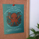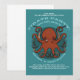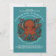 Invitations pour un événement sur le thème du pirate ou de la marine, avec un dessin d'une pieuvre rouge rouille avec un sourcil moyen, tentacules de curling dispersés dans toutes les directions et suceurs de couleur charnue exposés. Un banc de poissons passe dans l'arrière - plan. Pour les amateurs de poulpes et de céphalopodes avec attitude. Personnalisez pour convenir à votre événement avec les modifications apportées aux champs de texte modifiables. Customisez vos invitations pour changer la couleur arrière - plan vert océan qui entoure et montre à travers la forme arrière - plan semi-transparente.