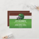 Carte d'insertion pour réception de Bar Mitzvah de football américain marron, vert et blanc. Cette carte de réception de Bar Mitzvah de football américain présente un fond en cuir marron grené qui ressemble au cuir d'un ballon de football, associé à une bande de cuir blanc grené et à un terrain de football vert qui ressemble à de l'herbe. Ce fond de football vert, marron et blanc est associé à une police de caractères de style sportif et à un casque de football vert et noir. Cette carte de réception de fête ou de célébration de Bar Mitzvah de football conviendrait parfaitement pour un Bar Mitzvah sur le thème de la NFL ou du Super Bowl. Cette carte d'insertion de réception de Bar Mitzvah sur le thème du football pourrait convenir pour n'importe quelle saison et est un excellent choix pour un garçon qui aime le football américain.