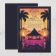 Cette invitation à une fête Tiki vous transporte dans une oasis balnéaire, baignée dans la douce lueur d'un coucher de soleil rouge et violet. Une hutte tiki pittoresque se niche au milieu de grands palmiers bruissants. La plage de sable immaculé, qui s'étend à l'infini, promet une célébration animée. Les couleurs qui se fondent dans le ciel crépusculaire évoquent un sentiment de tranquillité tropicale, préparant le terrain pour une fête Tiki vibrante.