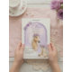 Cette invitation d'anniversaire de fille à cheval fleuri violet présente un poney palomino à l'aquarelle douce avec des fleurs de lavande et de la verdure. Conçue pour une fête d'anniversaire de poney ou un thème de cow-girl, cette invitation élégante mais ludique est parfaite pour les jeunes amoureux des chevaux qui fêtent leurs 6, 7 ou 8 ans. Les détails floraux raffinés et le portrait de palomino doux créent une charmante invitation d'anniversaire sur le thème du cheval qui se marie à merveille avec des décorations de fête assorties, des fournitures et des cadeaux personnalisés.