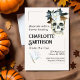 Cette invitation est un événement en soi ! Si vous cherchez une invitation unique pour votre événement d'automne, alors ne cherchez pas plus loin que cette invitation inspirée d'un crâne floral rustique. Avec un crâne entouré de belles fleurs de couleur automnale et une fleur de magnolia blanche pour compléter le cadre, cette invitation est à la fois rustique et vintage avec son cadre noir simple et ses couleurs rouille et gris atténuées. La combinaison de texte traditionnel et en détresse rassemble l'ensemble pour une pièce unique qui est un must pour votre baby shower, votre wedding shower ou votre shower de mariage !