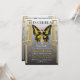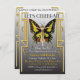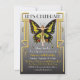 Faites la fête comme en 1922 avec ce carton d'invitation de fête Art Déco des Années folles élégant, illustré d'une belle jeune femme flapper aux ailes de papillon. Idéal pour une soirée speakeasy, thème Gatsby le Magnifique ou Charleston. Parfait pour un anniversaire, enterrement de vie de jeune fille, retraite ou cocktail.