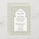 Cette magnifique invitation de mariage présente une arche arabe complexe avec les détails de l'événement au milieu. Au dos se trouve un champ pour des détails supplémentaires. Le texte des deux côtés est modifiable, alors n'hésitez pas à modifier les détails ainsi que la taille, le style et la couleur de la police. Cette invitation modifiable peut être utilisée pour n'importe quelle occasion : religieuse, mariage, fiançailles, anniversaire, anniversaire de naissance, retraite, etc.