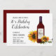 carton d'invitation pour une fête d'anniversaire avec tournesol et bouteille de vin