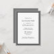 Cartons d'invitation de fête de bachelor gris et noir. Avant - blanc avec bordure grise et noire et texte classique. Arrière est gris uni.